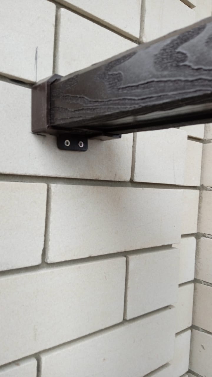 Перила пришлось пилить под углом и крепить без хомутов-креплений, так как клиент отказался покупать дорогие алюминиевые хомуты с шарнирами